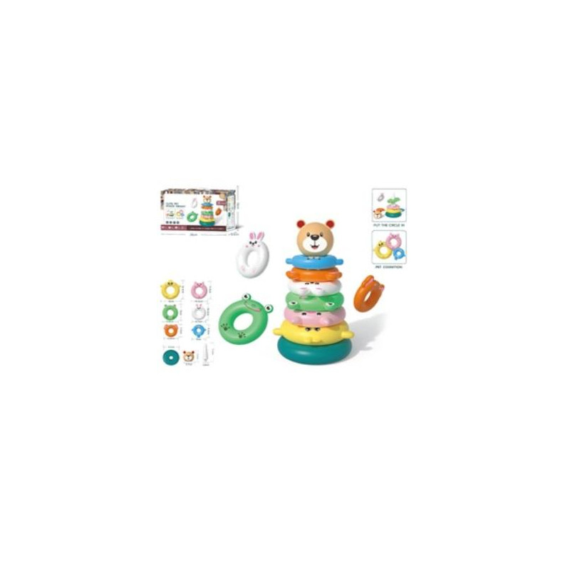 Piramidka Miś 26x16x8cmWykonana z miękkiego i bezpiecznego dla dzieci materiału. Idealna do objęcia przez małe rączki. Wyraziste i kolorowe wzory przyciągną uwagę malucha, pobudzając jego zmysły. Do zestawu dołączone naklejki aby można było ozdobić elementy oczkami i buźkami.