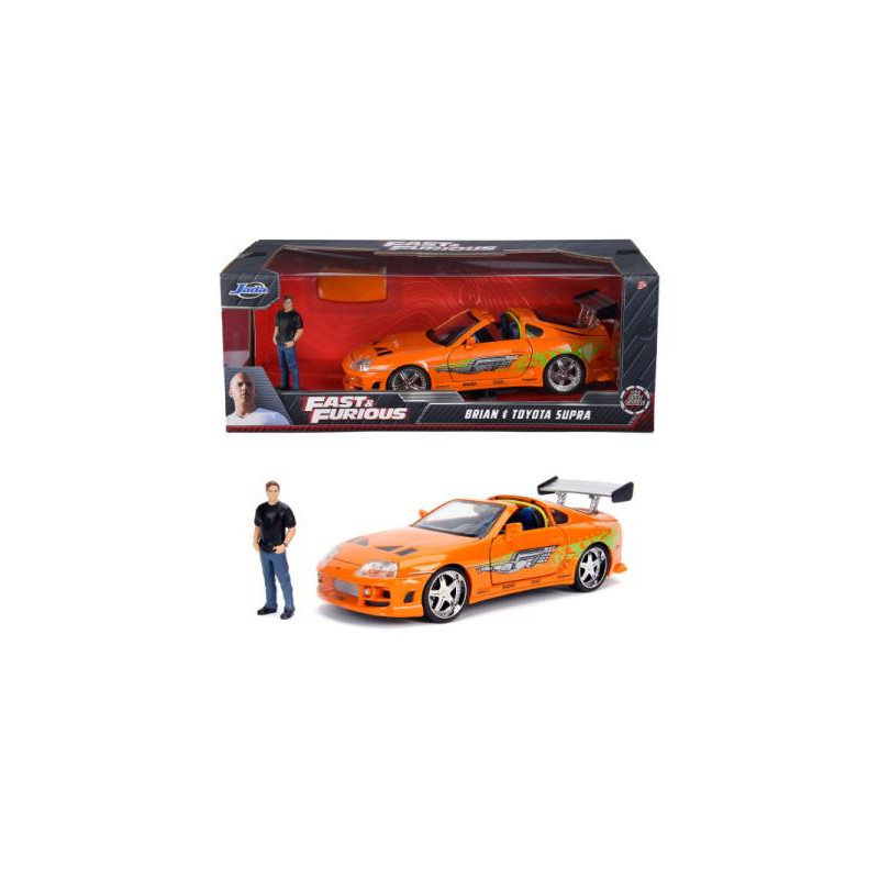 Fast & Furious 1995 Toyota Supra Metalowy model z otwieranymi drzwiami, maską i bagażnikiem oraz zdejmowanym dachem. W zestawie znajduje się metalowa figurka Briana O'Conner'a. Skala 1:24, Wymiary opakowania: 11,5 x 30 x 15,5 cm
