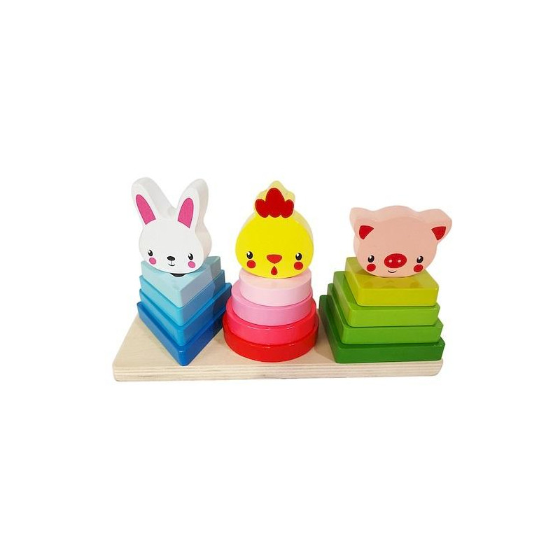UKŁADANKA DREWNIANA PIRAMIDKA WIEŻA ZWIERZĘTA ŚWINKA KRÓLICZEK KURCZAK