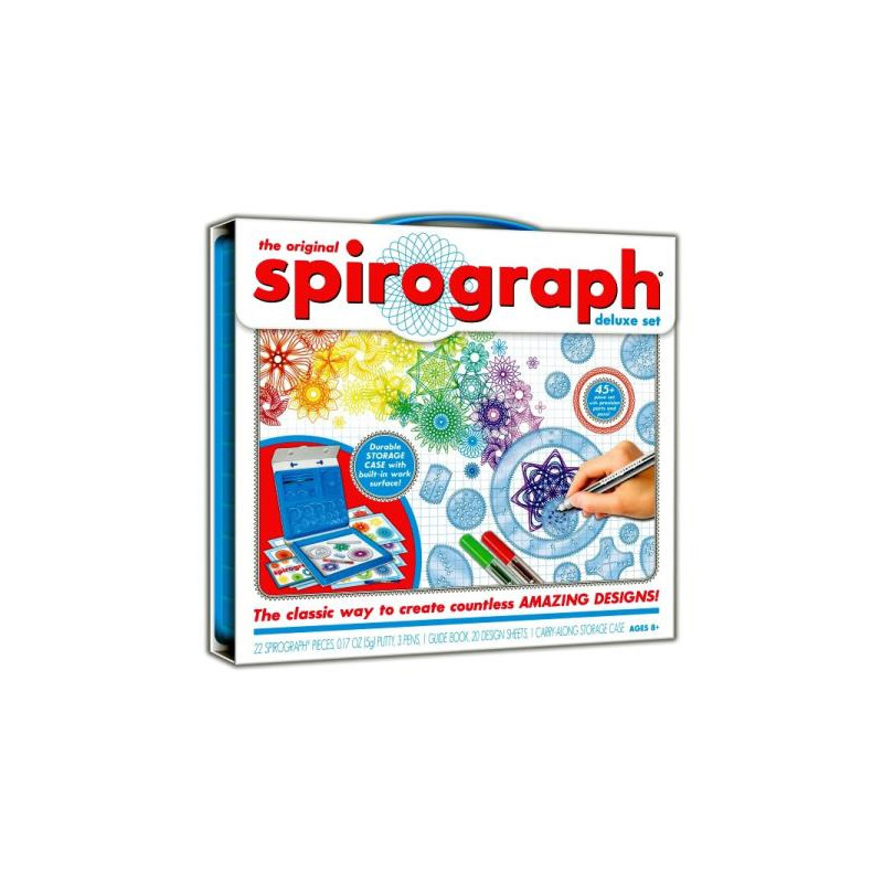 Odkąd w 1965 Spirograph został wprowadzony, sprawia, że aspirujący artyści w każdym wieku mogą tworzyć wyjątkowe i skomplikowane projekty. Początkowo zaprojektowane jako narzędzie dla inżynierów, koła i okręgi sprytnie łączą zasady sztuki i matematyki, tworząc unikatowe wzory. Spirograph inspiruje i zachwyca od lat. Zestaw zawiera polską instrukcję. Opakowanie z praktyczną rączką, zamykane na rzep. Zawartość opakowania: - 15 kół i 2 okręgi, - 1 podłużny kształt, - 4 różnokształtne elementy do tworzenia projektów, - 3 cienkopisy, - 20 arkuszy papieru, - 1 instrukcja z przewodnikiem. Wymiary opakowania: 33x30,5x4cm