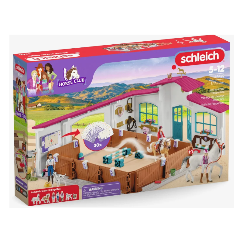 Arena jeździecka dla koni jest bogato wyposażonym zestawem Schleich. Realistyczna ujeżdżalnia stanowi świetne rozszerzenie świata Horse Club.