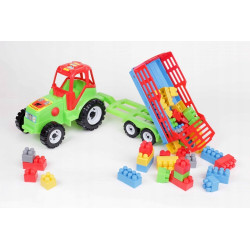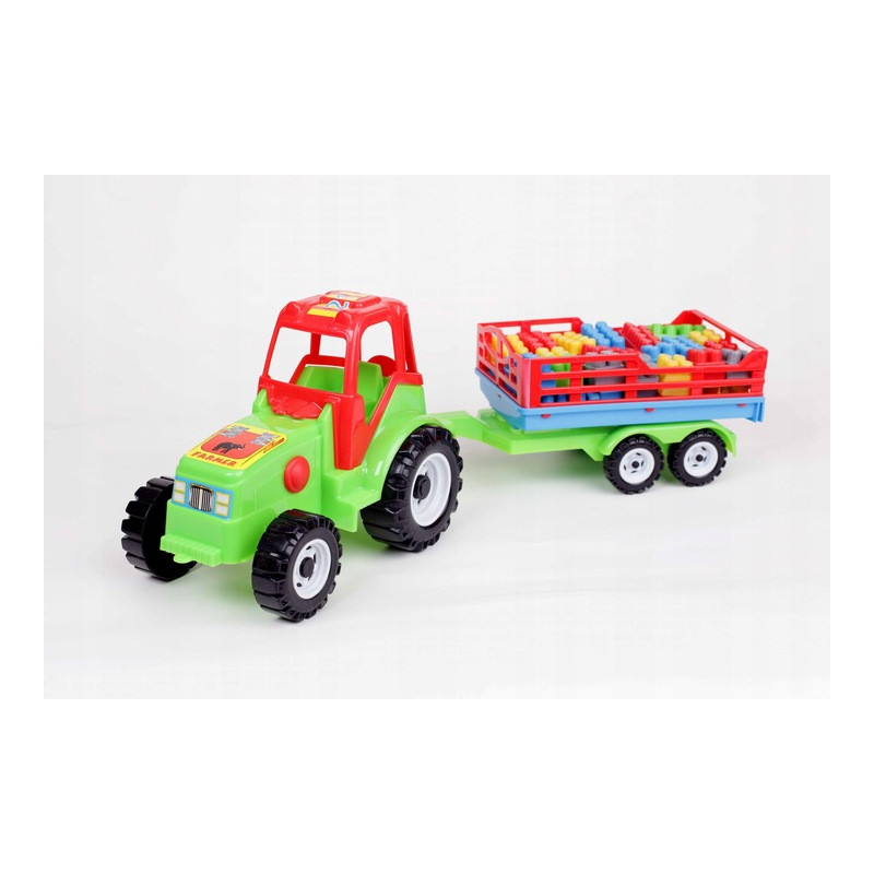 Traktor „Farmer” w wersji podstawowej oraz przyczepa na dwóch osiach uchylna do tyłu. Do zestawu dołączone są kolorowe klocki.