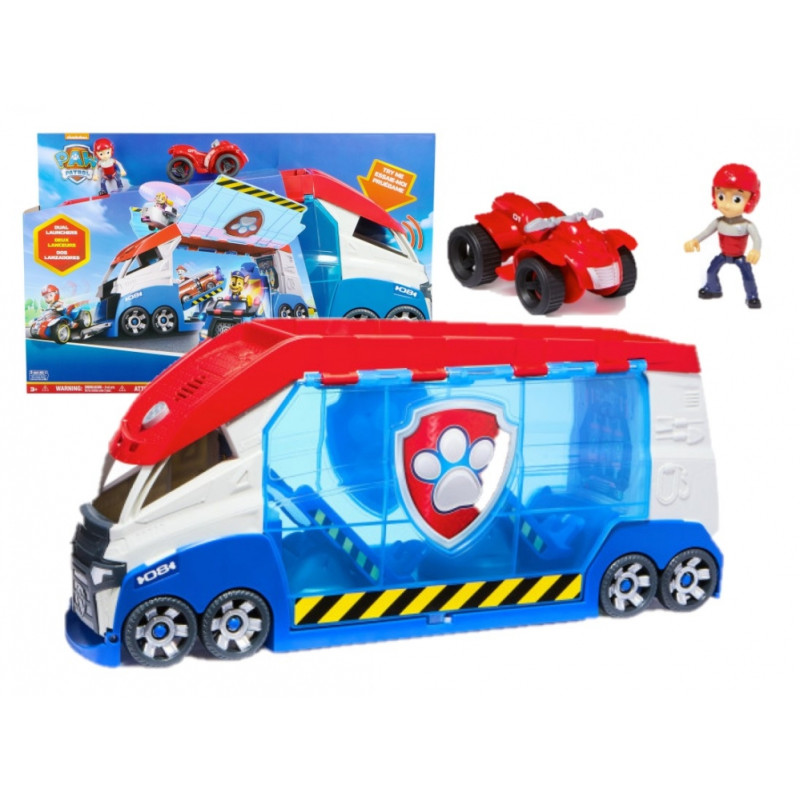 Pojazd mierzy prawie 60 cm, Zmieści się w nim aż pięć samochodzików twoich ulubionych szczeniaczków. Zabierz na misję całą drużynę! Ciężarówka jest wyposażona w wyrzutnie pojazdów, które pozwalają błyskawicznie wystrzelić dołączony do zestawu quad Rydera! Naciśnij przycisk na dachu, aby włączyć efekty dźwiękowe z serialu, podkręcając emocje związane z przygodą!