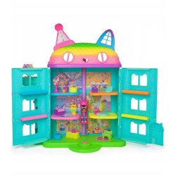 Domek dla lalek Purrfect Party o wysokości ponad 60 cm oferuje sześć różnych pokoi na trzech piętrach. Dzięki kolorowemu tęczowemu dachowi i figurce Gabby o wysokości 8,8 cm każda gra staje się przeżyciem. Skorzystaj z windy Cat-A-Vator, aby odwiedzić wszystkie piętra i odkryć ukryte poddasze, składając dach.