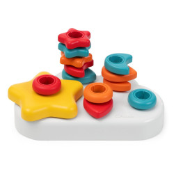 To wyjątkowy zestaw do układania kolorowych elementów w formie wpinek na chmurce. Dzięki różnym kształtom i kolorom dziecko może bawić się na wiele sposobów, ucząc się jednocześnie rozróżniania kolorów, kształtów i liczb.