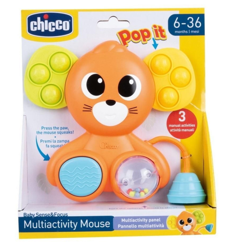 Wielofunkcyjna zabawka myszka, pełna aktywności, aby stymulować zdolności motoryczne i koordynację rąk dziecka.