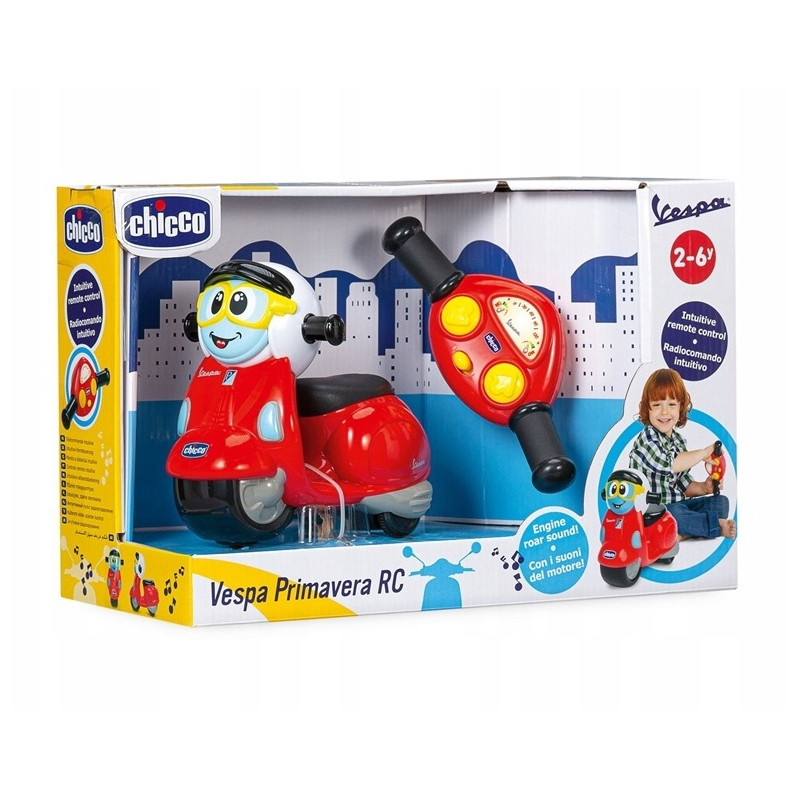 Identyczny w konstrukcji z oryginałem, motocykl wiernie odtwarza również oryginalne dźwięki, od ryku silnika po klakson. Chicco Vespa Primavera RC jest wyposażona w intuicyjną kierownicę, która po prostu przechylając ją, skręca pojazd w żądanym kierunku.