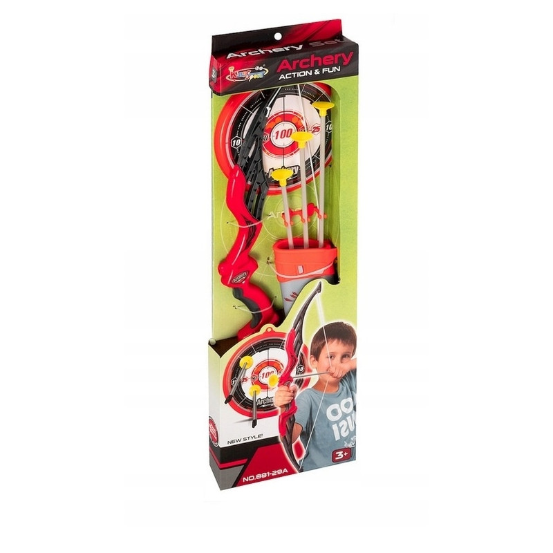 W zestawie: łuk, tarcza, strzałki zapakowane w pokrowiec.