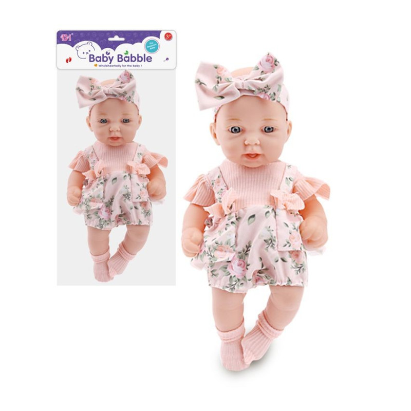 Idealna dla wszystkich dzieci lalka bobas w ubranku, opasce i skarpetkach.