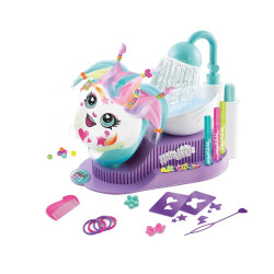 Dzięki uroczym akcesoriom stworzysz modne fryzurki, a przy pomocy myjki z prawdziwym strumieniem wody zadbasz o umycie włosków maskotki.