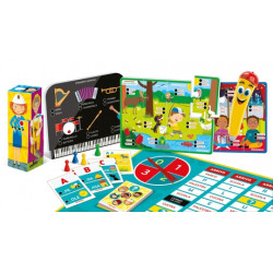 Zawiera puzzle, karty do gry, kostki i grę wyścigową, w której można grać z 12 różnymi tematami leksykalnymi, ponad 400 pytaniami i możliwością uczenia się wielu słów.