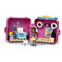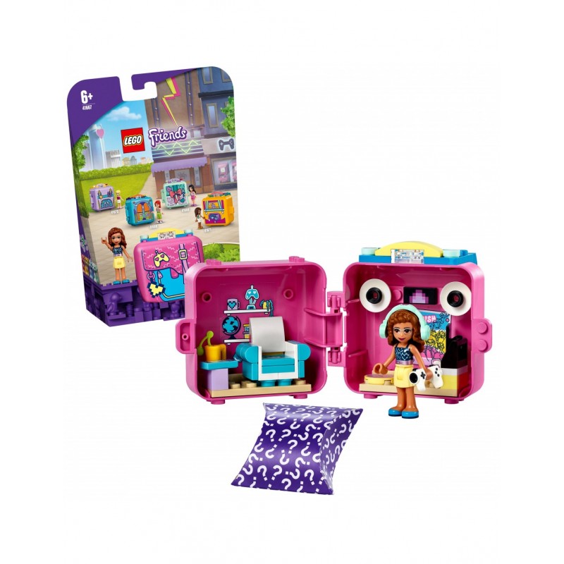 Kostka Olivii z kolekcji Lego Friends. W zestawie znajduje się minilaleczka LEGO® Friends Olivia, zabawkowy kot w jednym z czterech możliwych kolorów, wygodny fotel, głośniki, słuchawki, telewizor i kubek. Ta urocza zabawka o wymiarach ok. 7 cm wysokości, 7 cm szerokości i 5 cm głębokości wygląda jak mały plecak, więc będzie fajną ozdobą na biurko i nie zajmie zbyt wiele miejsca.