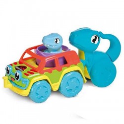 Wsadź małego dinusia do samochodu, aby cieszyć się jazdą, a następnie przyłącz mamę z tyłu, aby uzyskać dodatkową zabawę, która zachęci do raczkowania.