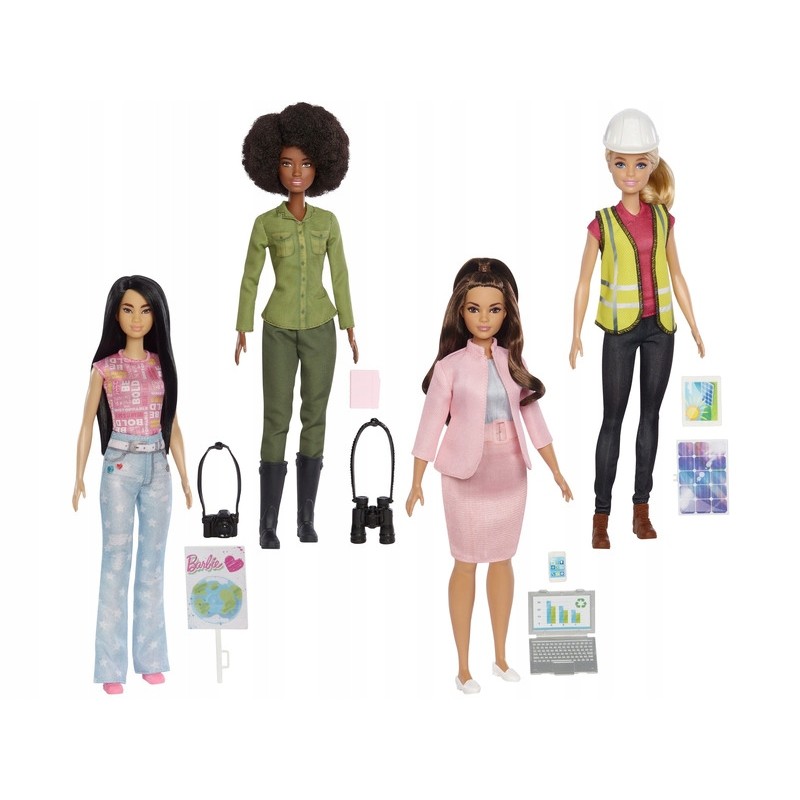 Kiedy dzieci bawią się Barbie, mogą być kim chcą. Te, które kochają środowisko, teraz mogą dołączyć do Eko drużyny Barbie! Ten wyjątkowy zestaw czterech lalek jest wykonany z tworzywa sztucznego z recyklingu (poza głową i włosami) i posiada certyfikat produktu Carbon Neutral. Każda z lalek przedstawia inną profesję związaną z troską o środowisko. Znajdziesz tu takie lalki jak Działaczka na rzecz ochrony środowiska, Inżynierka Energii Odnawialnej, Dyrektorka ds. Zrównoważonego Rozwoju oraz Aktywistka środowiskowa. Każda lalka ma specjalny strój – także wykonany z recyklingu – oraz akcesoria.