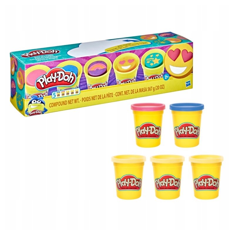 Pięciopak tub Play-Doh, który wywoła usmiech na Twojej twarzy! Podziel się radością - pod pokrywkami 3 tub znajdziesz ciastolinę ozdobioną wesołymi symbolami! Ponadto w zestawie znajdziesz 2 tuby z jednolitymi, zupełnie nowymi kolorami! Poczuj moc uśmiechu z ciastoliną Play-Doh i dołącz do kreatywnej zabawy.