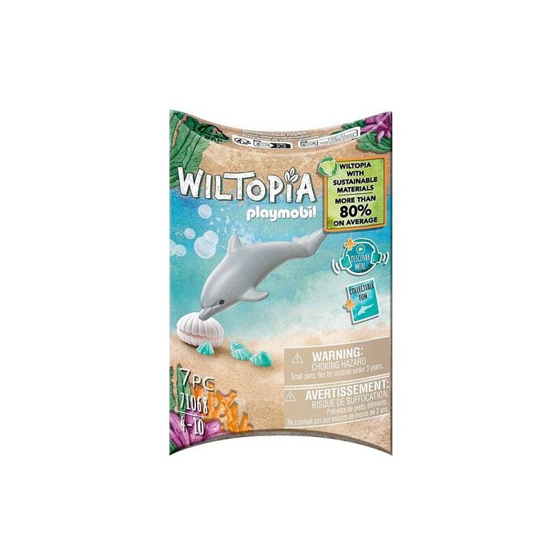 Wiltopia Delfin 71051. Skacz po falach jak delfin. Korzystając z dołączonej karty kolekcjonerskiej ze zwierzętami z aplikacją Wiltopia, dzieci mogą dowiedzieć się wszystkiego o zwierzętach i ich siedliskach, a nawet zrobić sobie z nimi selfie, wyświetlając zwierzęta bezpośrednio w swoim domu za pomocą AR. Dzięki Wiltopia — przyjaznej dla środowiska linii produktów PLAYMOBIL, dzieci mogą wyruszać na wyprawę w tętniące życiem regiony na całym świecie, zachęcając do doceniania żyjącej tam przyrody i całej naszej planety.