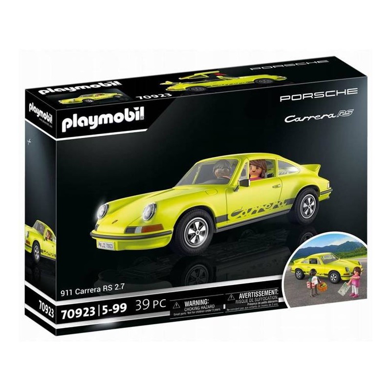Zestaw zawiera Porsche 911 Carrera RS 2.7 w eleganckim limonkowym kolorze ze zdejmowanym dachem i otwieranym bagażnikiem, dwie figurki PLAYMOBIL z koszem piknikowym, kocem, mapą drogową i innymi akcesoriami na niezapomnianą podróż. Dołączona tabliczka kolekcjonerska zawiera najważniejsze informacje dotyczące samochodu sportowego.