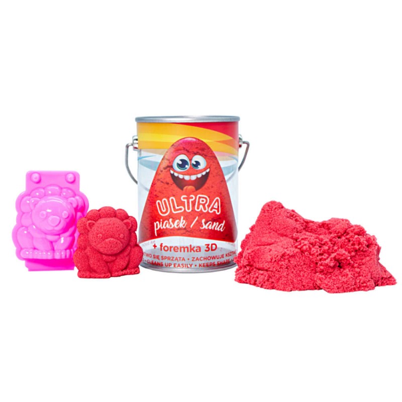 Mieszanka daje uczucie mokrego piasku, ale ręce pozostają całkowicie suche. Ultra Piasek zachowuje swoje właściwości i nadaje się zarówno do zabawy na sucho, jak i wodzie. To fantastyczna zabawa antystresowa, która zapewni dzieciom niezwykłe doznania sensoryczne. W zestawie jest również wyjątkowa foremka 3D.