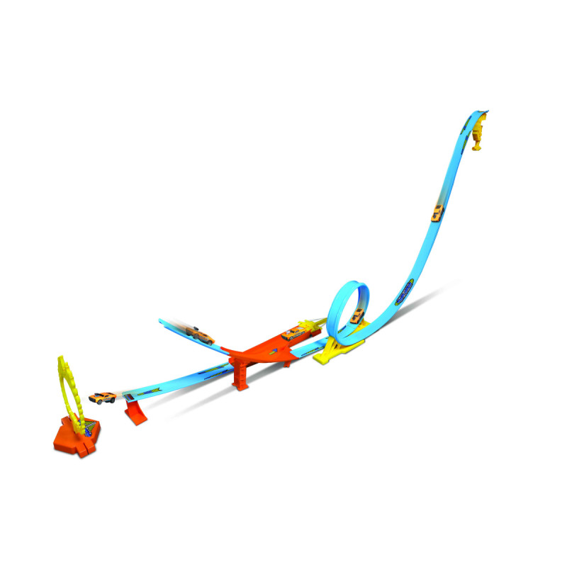 Super ciekawa zabawka dla dzieci w postaci toru z pętlą i skocznią z wyrzutem do celu.