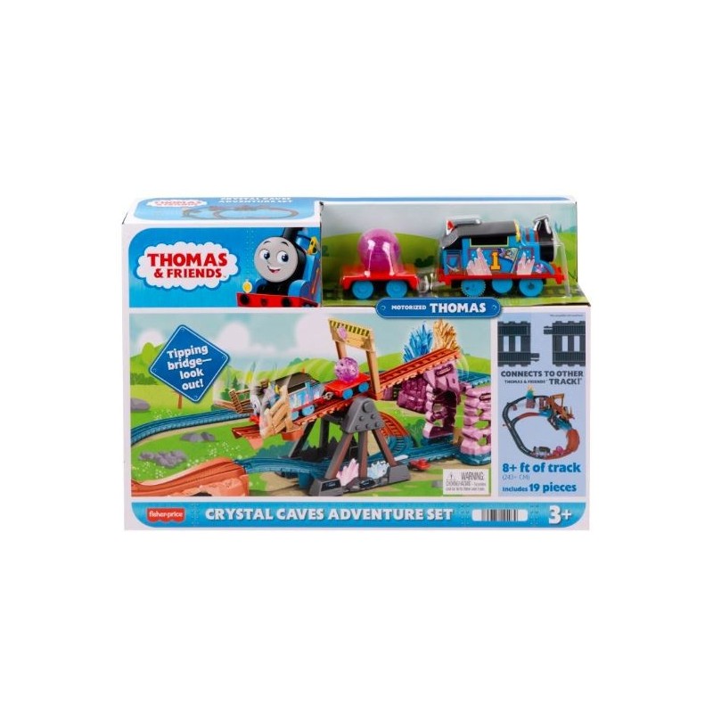Zestaw – „Kryształowa Jaskinia” od Fisher-Price z lokomotywą Tomek z napędem. Znajdziesz tu 9 elementów toru, wyjątkowy opadający most, jaskiniowe detale oraz ładunek, który mali konduktorzy mogą przewozić z pomocą Tomka. Odtwarzaj przygody z bajki "Tomek i Przyjaciele". Przesuń przełącznik na dachu lokomotywy, aby posłać Tomka z dostawą do Kryształowej Jaskini. Dzięki zwrotnicy możesz zdecydować, czy Tomek ma przejechać po opadającym moście, czy pod nim. W zestawie jest 240 cm toru. Komplet jest kompatybilny ze wszystkimi torami Tomek i Przyjaciele, poza tymi z serii drewnianej (zestawy z torami sprzedawane oddzielnie, zależenie od dostępności), aby poszerzać możliwości zabawy.