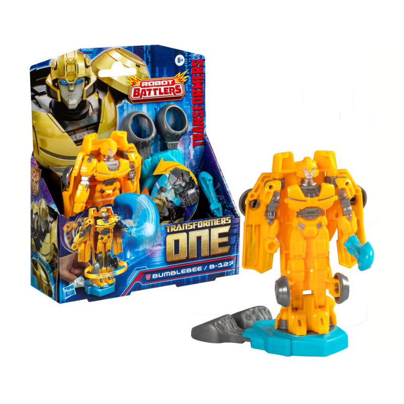 Przeżywaj niezwykłe historie pochodzenia legendarnych robotów Transformers dzięki figurkom Robot Battlers z filmu Transformers One! Ustawiaj figurki na platformach do walki i przesuwaj gniazda, by odtwarzać niesamowite ruchy. Strąć figurkę z platformy, by wygrać! Te 11,5-centymetrowe figurki przekształcają się z robota w tryb alternatywny w 3-5 ruchach. W zestawie znajduje się figurka inspirowana postacią z filmu Transformers One, platforma do walki oraz akcesoria, które można przymocować w trybie robota. Inspirowane filmem interaktywne zabawki to świetne prezenty dla chłopców i dziewczynek w wieku od 6 lat.