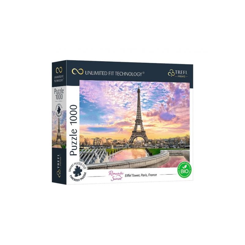 Puzzle składające się z 1000 elementów są dedykowane prawdziwym miłośnikom układanek. Po ułożeniu powstanie obraz o wymiarach 683 x 480 mm. Puzzle zostały wykonane z wysokiej jakości materiałów z zastosowaniem najgrubszej tektury, unikalnych kształtów oraz specjalnej metody cięcia. Dzięki temu możemy stworzyć indywidualny kolaż oraz łatwo przenieść całą układankę. Ponadto poszczególne elementy produktów UFT są wykonane z materiałów ekologicznych. Worek zsypowy oraz stickery na pudełku zostały wykonane z folii biodegradowalnej. Produkty nie są opakowane w folię termokurczliwą.
