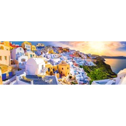 Zachód słońca na Santorini, Grecja to puzzle panoramiczne składające się z 1000 elementów, zaprojektowane specjalnie z myślą o fanach greckich widoków. Puzzle zostały wykonane z wysokiej jakości naturalnych materiałów, z zastosowaniem specjalnego, kalandrowanego papieru odbijającego światło, dzięki któremu układanie staje się jeszcze przyjemniejsze i łatwiejsze. Po ułożeniu powstanie obrazek o wymiarach 970 x 340 mm.