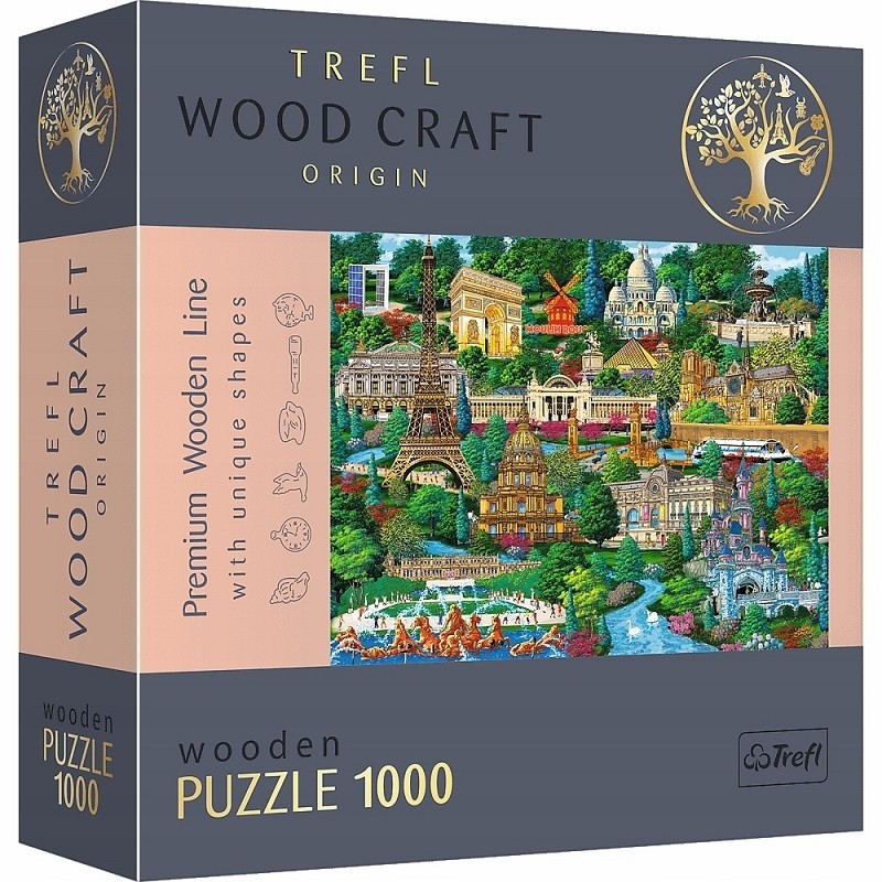 Puzzle 1000 elementów to idealna gratka dla wszystkich miłośników układanek, pozwoli stworzyć obrazek o wymiarach 51,9 x 37,5 cm. Układanka została wykonana z drewna, a opakowanie przyjazne środowisku w całości z tektury. Puzzle zawierają nieregularne elementy oraz 100 figurek w różnych symbolach, kształtach i różnej tematyce.
