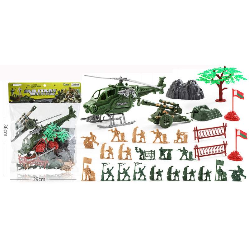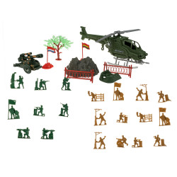 Zestaw wojsko to ekscytująca zabawka dla małych entuzjastów militariów. Pozwala dzieciom na wcielenie się w rolę żołnierzy oraz pilotów helikopterów, zapewniając dynamiczną i realistyczną grę. Zestaw zachęca dzieci do tworzenia własnych scenariuszy i misji militarnych, rozwijając wyobraźnię i umiejętności planowania. Zabawka wspiera rozwój strategicznego myślenia i zdolności organizacyjnych. Detale i kształty figur oraz helikoptera stymulują zainteresowanie dziecka tematyką wojskową i lotniczą. Zestaw zawiera żołnierzyki, helikopter i armatę.