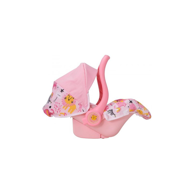 Idealnie nadaje się do przenoszenia ulubionych lalek czy maskotek, zapewniając realistyczną i bezpieczną zabawę w naśladowanie opieki nad maluchami. Nosidełko posiada ruchomy uchwyt, który ułatwia przenoszenie, a regulowany daszek zapewnia ochronę lalce.