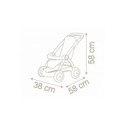 Wózek z plastikową poręczą obszytą materiałem, tylną kieszenią i koszykiem. Wykonany z metalu i plastiku. Lekki i zwrotny wózeczek, dzięki czemu dziecko może wygodnie przenosić lalkę w dowolne miejsce. Wózek przeznaczony dla lalek do 42 cm (brak w zestawie).