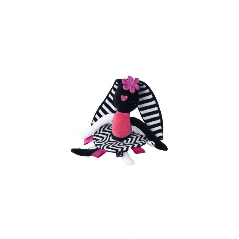 Maskotka, przytulanka, pobudzi zmysły każdego maluszka. Czarno-białe kolory oraz szeleszcząca spódniczka przykują uwagę najmłodszych, kolorowe metki będą ciekawym dodatkiem dla maluszka do chwytania małymi rączkami.