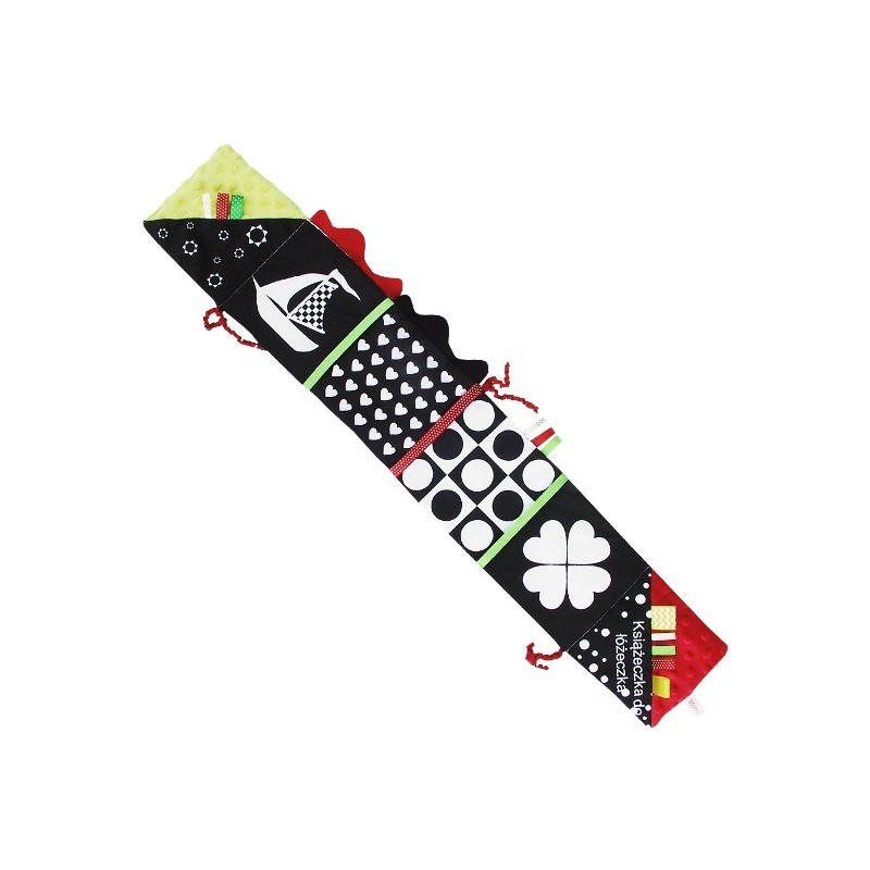 Mięciutka, materiałowa książeczka Mom’s Care przeznaczona jest dla najmłodszych maluchów. Kontrasty i wyraziste kolory: biały, czarny i czerwony stymulują zmysły dziecka już od pierwszych dni. Książeczka pełna jest niespodzianek. Liczne elementy interaktywne, takie jak szeleszczące „kartki”, wstążki, z pewnością zapewnią dziecku wspaniałą zabawę na długi czas, a przy okazji będą stymulować jego rozwój. Wykonana jest z przyjemnych w dotyku materiałów o odmiennych fakturach, które z pewnością zaciekawią badawcze paluszki. Książeczka jest wyposażona w sznureczki, łatwo przymocować ja do łóżeczka lub do wózka. Jest na tyle duża, że może chronić malucha przed uderzeniem o szczebelki.