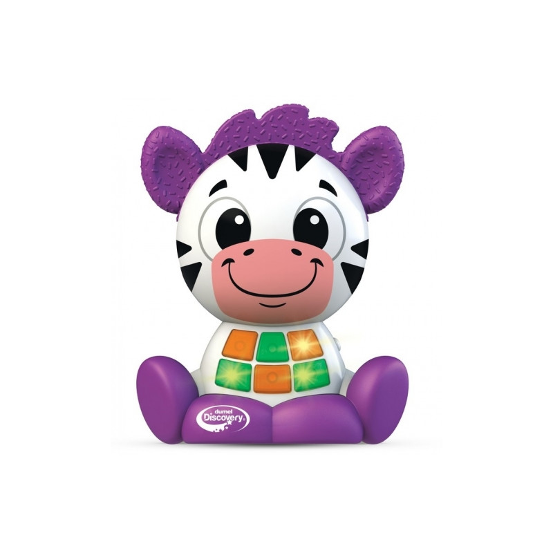 Niewielki rozmiar, bogate wnętrze! Mądra Zeberka, uczy maluchy cyferek i śpiewa dwie edukacyjne piosenki. Zwierzak odtwarza aż 25 różnych dźwięków i melodii, z którymi zabawa stanie się jeszcze weselsza! Na brzuszku żyrafy znajdują się przyciski, aktywujące światełko i poszczególne dźwięki. Uszka zwierzaka także wydają odgłos, a jest nim terkotanie, które dziecko usłyszy za każdym razem, gdy przekręci je w prawą lub w lewą stronę.