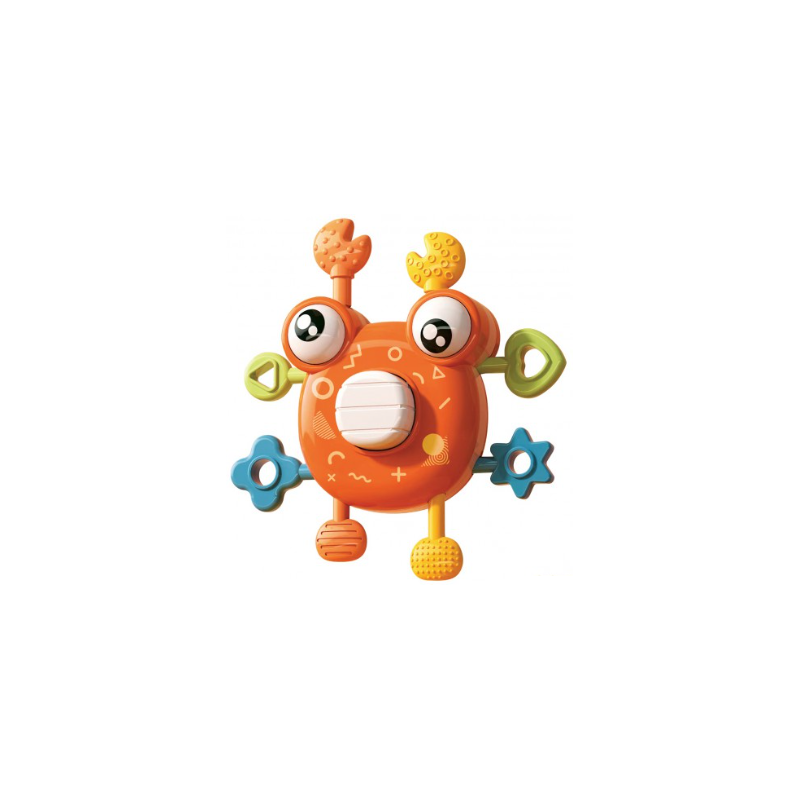 Zabawny krabik rozweseli malucha, dostarczając mu okazji do sensorycznej zabawy! Odnóża krabika można przesuwać, a podczas wykonywania tej czynności, wydają one terkoczący odgłos. Przesuwanie linek powoduje także obracanie się oczu zabawki. Krab wyposażony jest w przycisk - piszczałkę. Niewielki rozmiar zabawki pozwoli zabrać ją ze sobą w podróż, aby mogła towarzyszyć maluchowi w każdym miejscu.