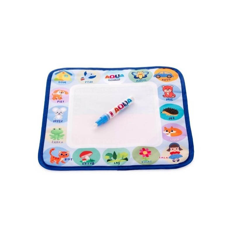Mata dla małych artystów w kompaktowym rozmiarze, sprawdzi się idealnie w każdym miejscu. Została ona podzielona na 4 pola kolorystyczne, co umożliwia tworzenie barwnych obrazków. W zestawie znajduje się także specjalny mazak, którym, po napełnieniu wodą, można malować po macie. Kiedy mata wyschnie, obrazki znikną, jak zaczarowane!