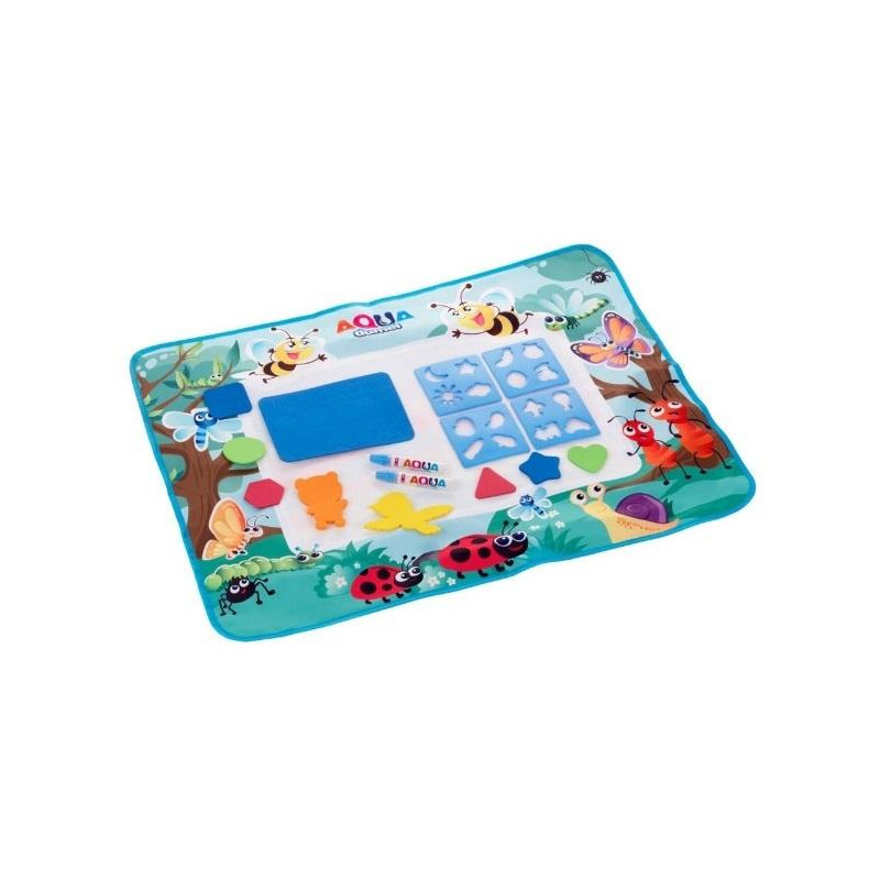 Duża mata do malowania w siedmiu kolorach, dwa mazaki na wodę oraz szablony. Aby przystąpić do zabawy, wystarczy napełnić mazak wodą i malować nim po macie. Kiedy mata wyschnie, wcześniej narysowany obrazek zniknie, jak zaczarowany!