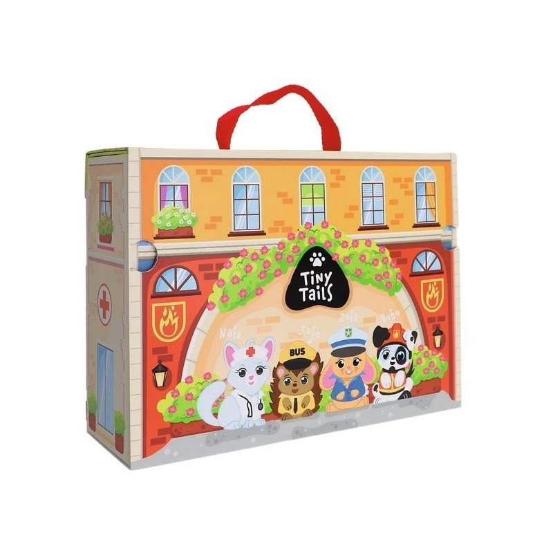 Zestaw po otwarciu przekształca się w miasteczko z charakterystycznymi budynkami i pojazdami. Kuferek pełni funkcję miejsca zabawy, a jednocześnie służy jako praktycznie opakowanie do przechowywania wszystkich elementów zestawu i do wygodnego przenoszenia. Zabawka wspiera rozwój kreatywności i wyobraźni .Drewniane figurki zachęcają do odgrywania ról.