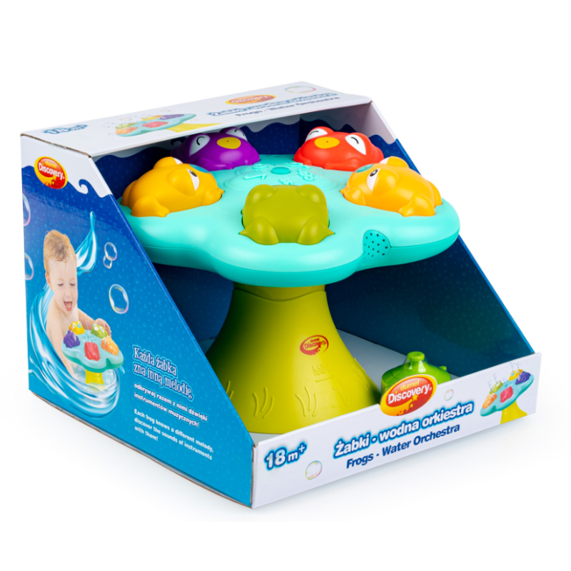 Naciskaj żabki, aby bawić się razem z nimi, przy wesołych dźwiękach, kolorowych światełkach i zróżnicowanych strumieniach tryskającej wody! Zapomnij o nudzie, każda z żabek zna inną melodię, dzięki czemu zabawa z nimi to prawdziwa frajda. Aby uruchomić zabawkę, należy długo przytrzymać okrągły przycisk, znajdujący się na środku. Po uruchomieniu, każde kolejne, pojedyncze naciśnięcie guziczka spowoduje zmianę sposobu wytryskiwania wody. W zestawie poza fontanną, przypominającą staw, wypełniony żabkami, znajdziesz także przyssawki do przymocowania zabawki do gładkiej, czystej powierzchni.