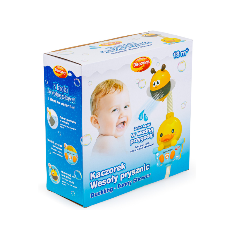 Wystarczy, za pomocą przyssawek, przymocować kaczorka do ściany wanny, umieścić pompkę w wodzie i gotowe. Po naciśnięciu przycisku, pszczółka tryśnie wodą! Wyginaj ramię zabawki w dowolny sposób, dostosowując tym samym kierunek strumienia wody do swoich potrzeb.