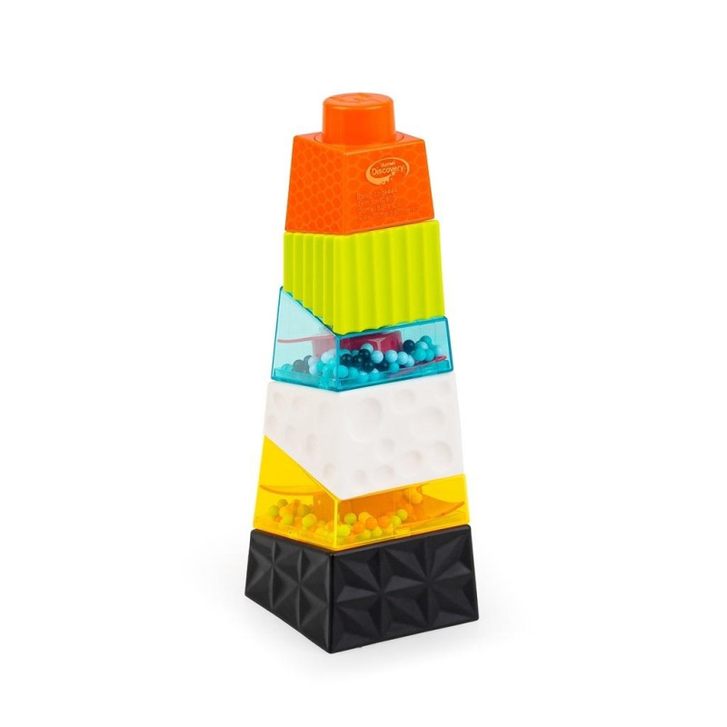 Maluch może budować na wiele różnych sposobów, ćwicząc równowagę! Zestaw kreatywnych, krzywych klocków pozwala zbudować wieżę, której kształt będzie się zmieniał w zależności od kolejności połączonych ze sobą elementów.
