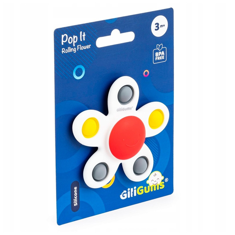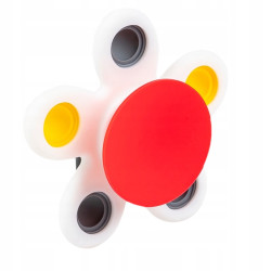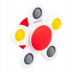 Zabawka kwiatek wyposażony został w praktyczną przyssawkę, dzięki czemu możesz przyczepić go do czystej, gładkiej powierzchni, aby nie przesuwał się podczas zabawy. Posiada funkcję kręcenia kwiatkiem i obserwowania jak się kręci. Wciskając kulki do środka i z powrotem, na zewnątrz kwiatka, dziecko może rozwijać zdolności poznawcze, a także ćwiczyć paluszki.