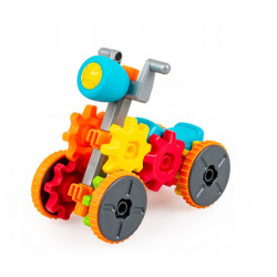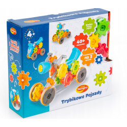 Kreatywny zestaw, pełen kolorowych zębatek, kółek i innych części, pozwoli Ci wyczarować własną, odjazdową maszynę! W zestawie znajduje się ponad 40 elementów, z których zbudujesz jeden z trzech pojazdów przedstawionych na obrazku. Kiedy uporasz się z tym zadaniem, możesz zdemontować pojazd i z dostępnych części, zbudować inny. Trybikowy zestaw pozwoli najmłodszym rozwijać wyobraźnię i ćwiczyć sprawność manualną, poprzez wykonywanie precyzyjnych czynności.
