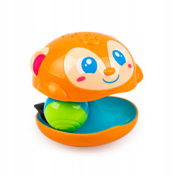 Zabawny zwierzak, który chybocze się na swej małpiej podstawce, wydając przy tym dźwięk dzwoneczka! W środku zabawka posiada dwukolorową piłeczkę, która także wiruje dookoła, razem z małpką. Gdy Zakręcisz zabawką, słuchaj i obserwuj. Odkryjesz zależności przyczynowo - skutkowe, bawiąc się przy tym w najlepsze.