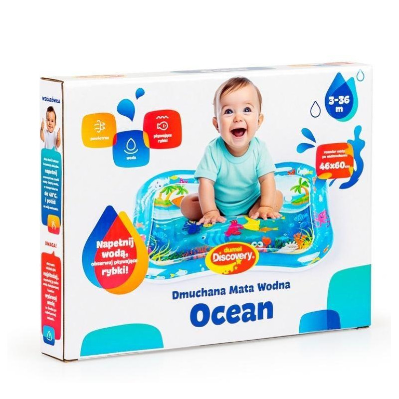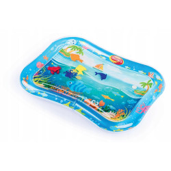 Mata wodna, która zapewni maluchowi niezapomniane wrażenia z odczuwania ruchu wody oraz obserwowania pływających w niej kolorowych kształtów, nawiązujących do wodnych stworzeń. Matę zdobią przyjazne obrazki, które umilą najmłodszym zabawę. Krawędź wyposażona jest w ukryty zawór, służący do nadmuchania brzegu maty, a na spodzie znajduje się zawór do napełnienia środkowej części maty wodą. Gdy maluch położy się na środku maty lub przyciśnie go rączką, woda zafaluje, wprawiając w ruch kolorowe rybki. Aby mata mogła służyć jak najdłużej, należy napełniać ją wyłącznie wodą destylowaną i pamiętać o tym, aby po zakończonej zabawie wylać wodę, pozostawiając matę do wyschnięcia.