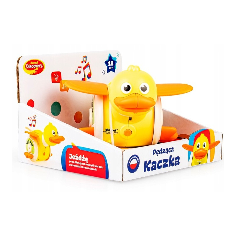 Kaczucha jeździ wesoło, trzepocząc skrzydełkami, a czynności tej towarzyszy świecenie się kółeczek. Zabawka śpiewa po polsku, ale potrafi także poruszać się bez dźwięku. Kaczuszka posiada wbudowany akumulator, który należy ładować dołączonym do zestawu kablem USB.