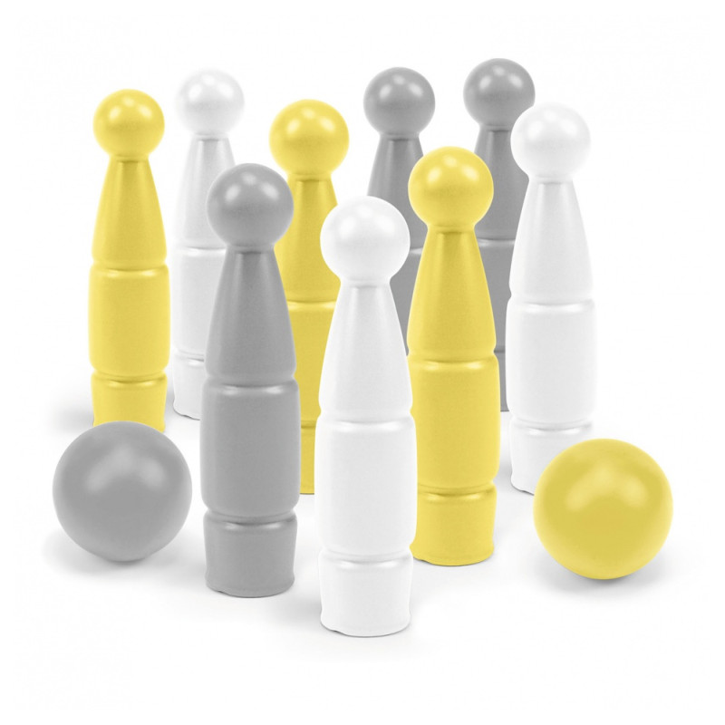 Wspaniały zestaw do gry w kręgle w kolorze żółto-biało-szarym to fantastyczny sposób na wspólną zabawę. W zestawie znajduje się 9 różnokolorowych kręgli i 2 piłeczki. Całość jest starannie wykonana z bezpiecznych dla dzieci i trwałych materiałów. Gra w kręgle z serii Toys in Trends od Wader pobudzi wyobraźnię najmłodszych, rozwinie ich umiejętności motoryczne i manualne, precyzję ruchów, koordynację wzrokowo-ruchową i równowagę. Zabawa ma również pozytywny wpływ na myślenie przestrzenne i rozwija umiejętność oceny odległości, uczy również dyscypliny oraz koncentracji. Zapraszając do zabawy kolegów i koleżanki nasza pociecha już od najmłodszych lat będzie mogła integrować się z rówieśnikami rozwijając swoje kompetencje społeczne. Najmłodsi będą mogli nauczyć się zasad gry w kręgle opartych na uczciwej rywalizacji.