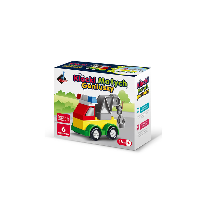 Odkryj magiczny świat konstrukcji z Klockami małych geniuszy Autko 6 elementów, które zaprojektowano z myślą o najmłodszych odkrywcach! Ten sześcioczęściowy zestaw od Askato to idealny wstęp do rozwijania zdolności manualnych i kreatywności u maluchów już od 18. miesiąca życia. Dziecko z łatwością połączy duże, bezpieczne elementy, tworząc swoje pierwsze autko i czerpiąc ogromną satysfakcję z samodzielnego budowania.