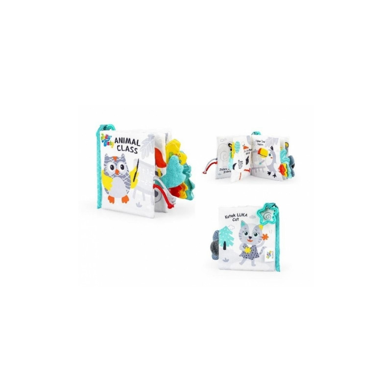 Urocza materiałowa książeczka wypełniona po brzegi bystrymi zwierzaczkami! Znajdziemy tu szeleszczącą okładkę i nazwy zwierzątek w dwóch językach polskim oraz angielskim. Na małych odkrywców czeka sensoryczna niespodzianka! Z poszczególnych stron książeczki wystają materiałowe elementy, różniące się kolorem i fakturą, a wszystko to, aby jak najlepiej stymulować zmysły malucha. Praktyczna zawieszka pozwoli przymocować książeczkę w dowolnym miejscu.