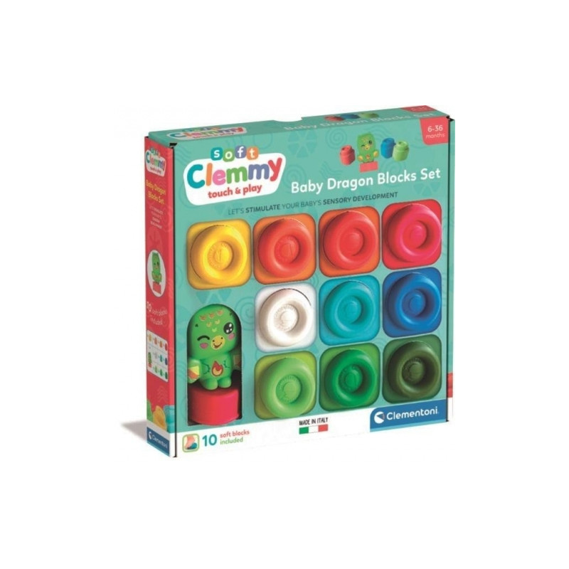 Zabawka konstrukcyjna przeznaczona dla najmłodszych dzieci, wykonana z miękkiego, bezpiecznego tworzywa. Należy do serii Soft Clemmy marki Clementoni, stworzonej specjalnie dla niemowląt i małych dzieci. Zestaw zawiera 10 kolorowych, miękkich klocków oraz figurkę smoka, która urozmaica zabawę i zachęca do tworzenia prostych konstrukcji. Elementy są lekkie, elastyczne i łatwe do chwytania przez małe rączki.